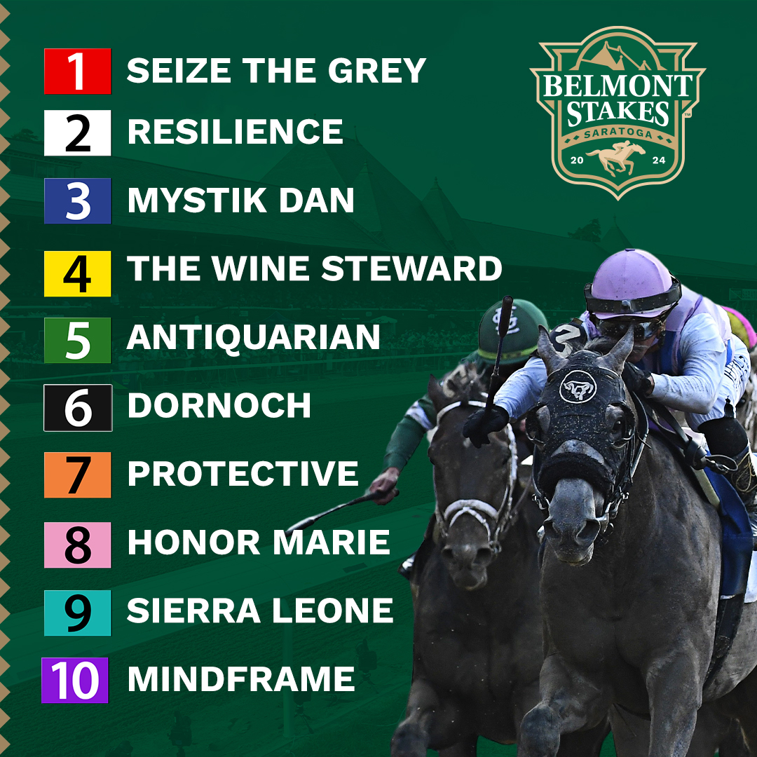 Belmont Stakes 156 features a talented field of 10 entrants highlighted by both the Derby (Mystik Dan) and Preakness (Seize the Grey) winners along with the Derby runner-up (Sierra Leone).